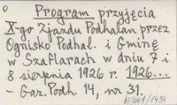 Program przyjęcia X-go Zjazdu Podhalan przez Ognisko Podhal. i Gminę w Szaflarach w dniu 7 i 8 sierpnia 1926 r. 1926...