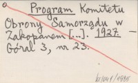 Program Komitetu Obrony Samorządu w Zakopanem [...]. 1927