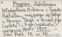 Program Jubileuszu Władysława Orkana i Zjazdu Podhalan, mającego się odbyć w Nowym Targu w dniach 6-go (sobota) i 7-go (niedziela) sierpnia 1927 r. 1927...