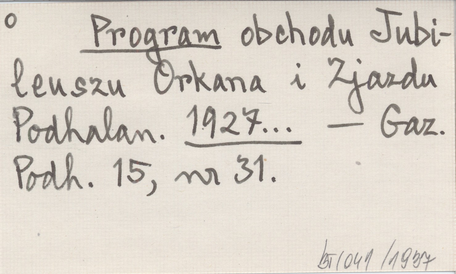 Program obchodu Jubileuszu Orkana i Zjazdu Podhalan. 1927...