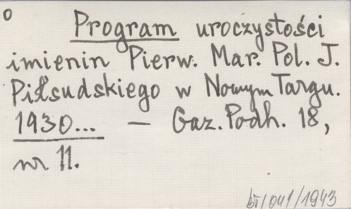 Program uroczystości imienin Pierw. Mar. Pol. J. Piłsudskiego w Nowym Targu. 1930...