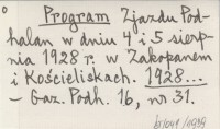 Program Zjazdu Podhalan w dniu 4 i 5 sierpnia 1928 r. w Zakopanem i Kościeliskach. 1928...