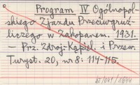 Program IV Ogólnopolskiego Zjazdu Przeciwgruźliczego w Zakopanem. 1931