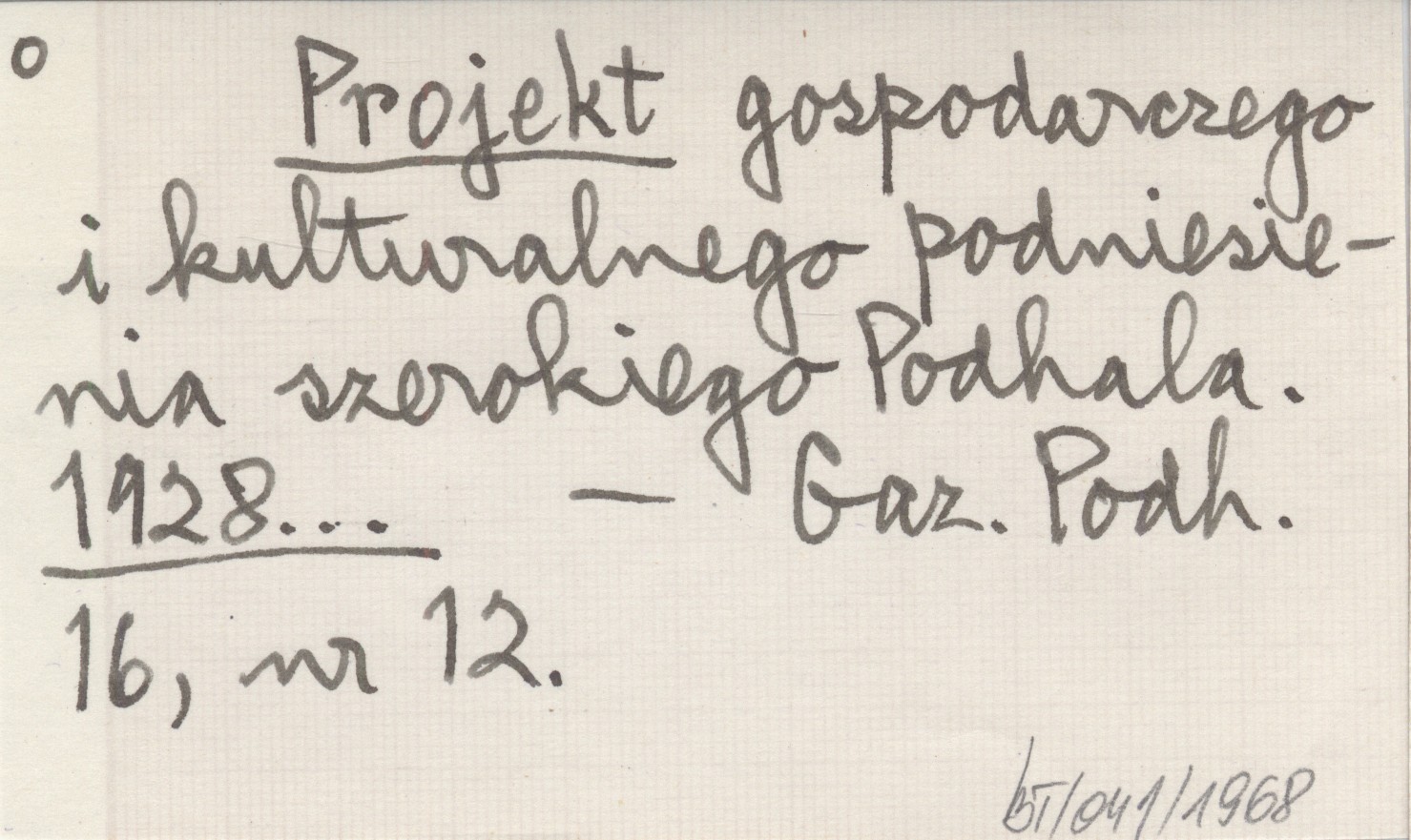 Projekt gospodarczego i kulturalnego podniesienia szerokiego Podhala. 1928...