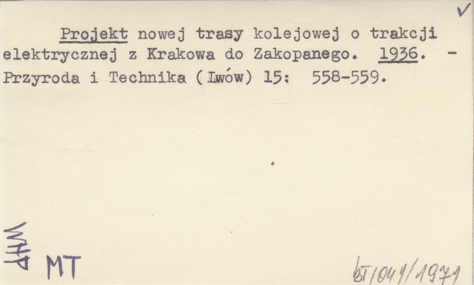 Projekt nowej trasy kolejowej o trakcji elektrycznej z Krakowa do Zakopanego. 1936