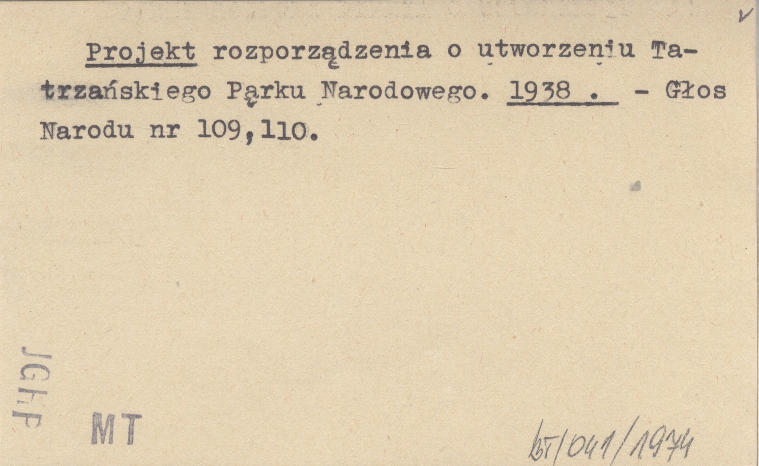 Projekt rozporządzenia o utworzeniu Tatrzańskiego Parku Narodowego. 1938