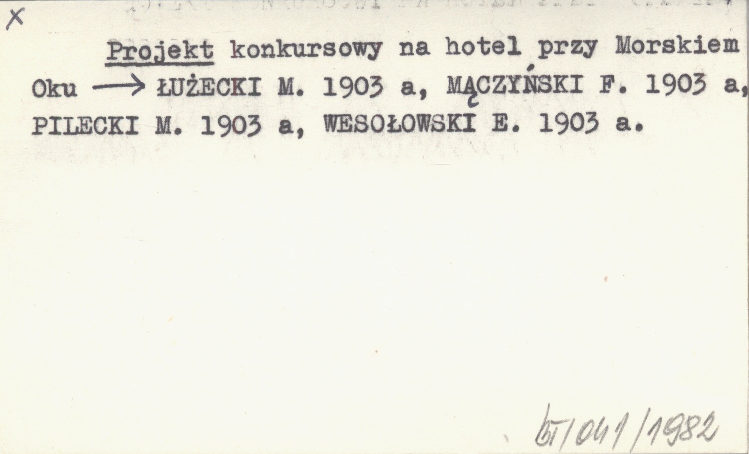 WESOŁOWSKI E. 1903 a ŁUŻECKI M. 1903 a MĄCZYŃSKI F. 1903 a PILECKI M. 1903 a