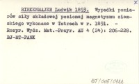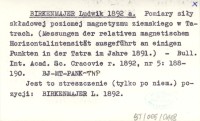 BIRKENMAJER L. 1893 Wyniki pomiarów poziomej siły magnetyzmu ziemskiego wykonanych w Tatrach w r. 1891.