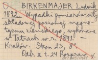 BIRKENMAJER Ludwik 1892 Wypadki pomiarów siły składowej poziomej magnetyzmu ziemskiego w Tatrach.