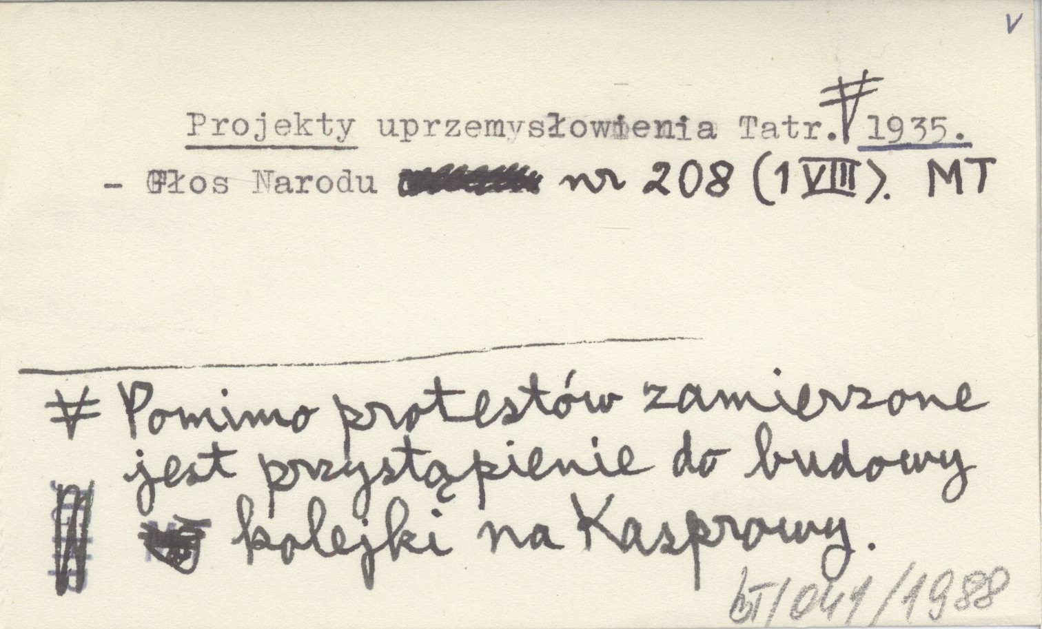 Projekty uprzemysłowienia Tatr. Pomimo protestów zamierzone jest przystąpienie do budowy kolejki na Kasprowy. 1935