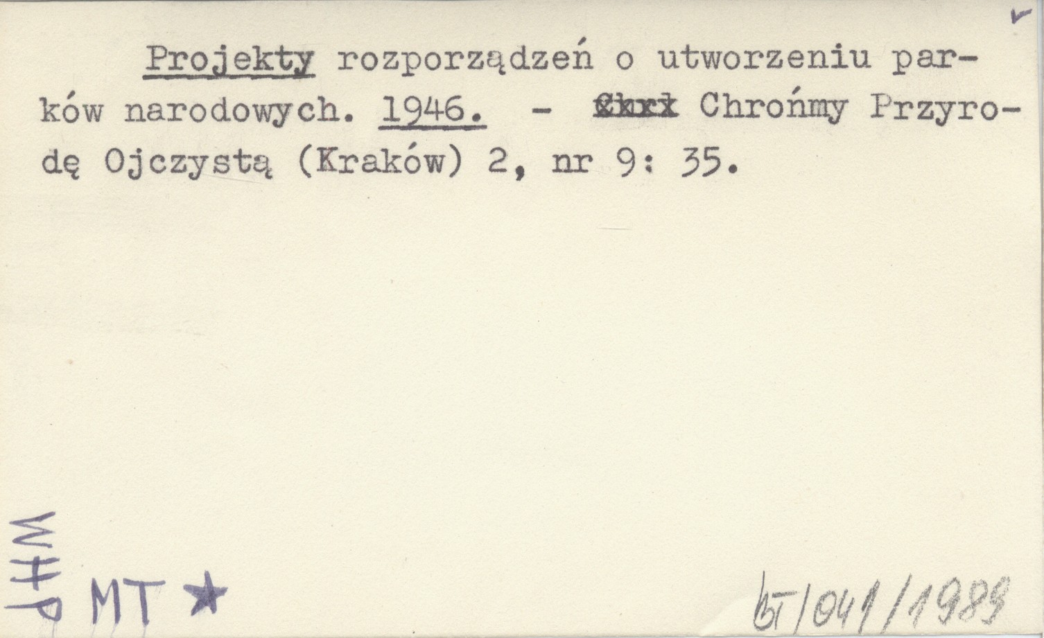 Projekty rozporządzeń o utworzeniu parków narodowych. 1946