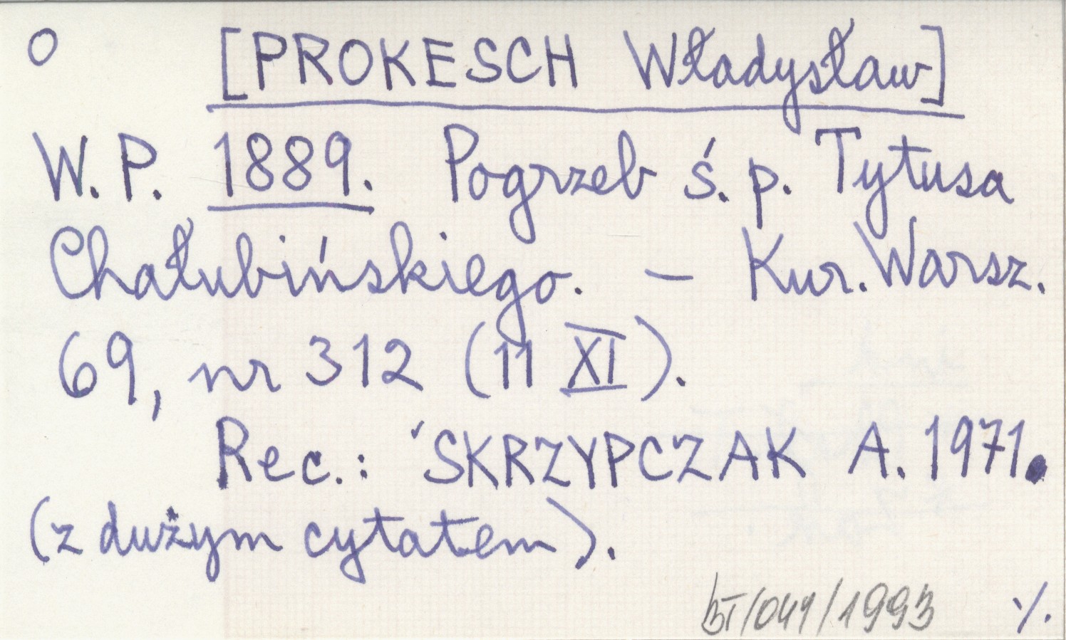 W. P. [PROKESCH Władysław] 1889 Pogrzeb ś.p. Tytusa Chałubińskiego.