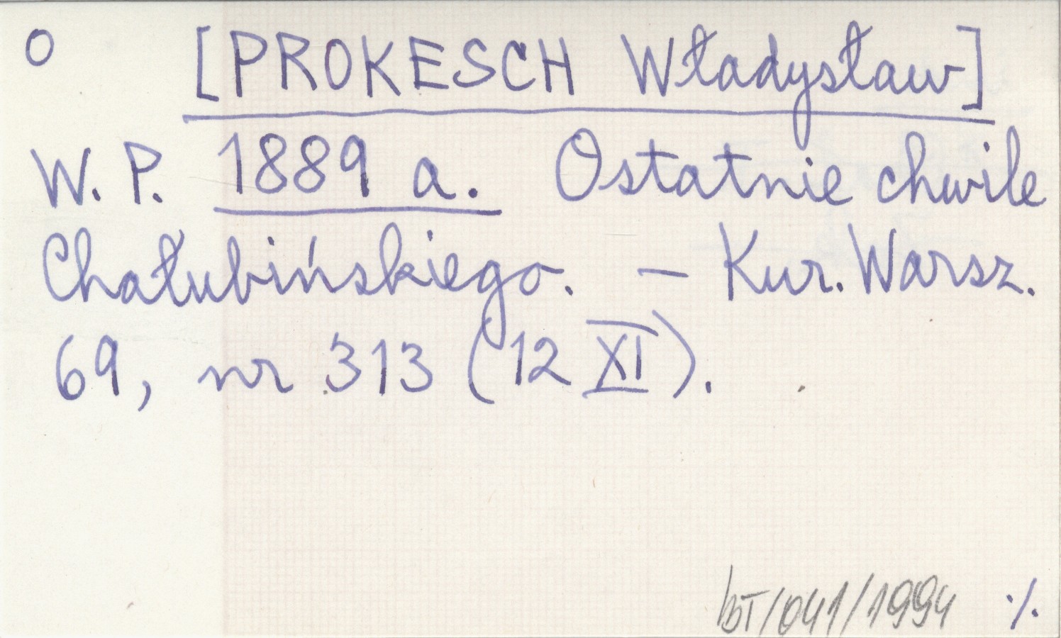 W. P. [PROKESCH Władysław] 1889 a Ostatnie chwile Chałubińskiego.