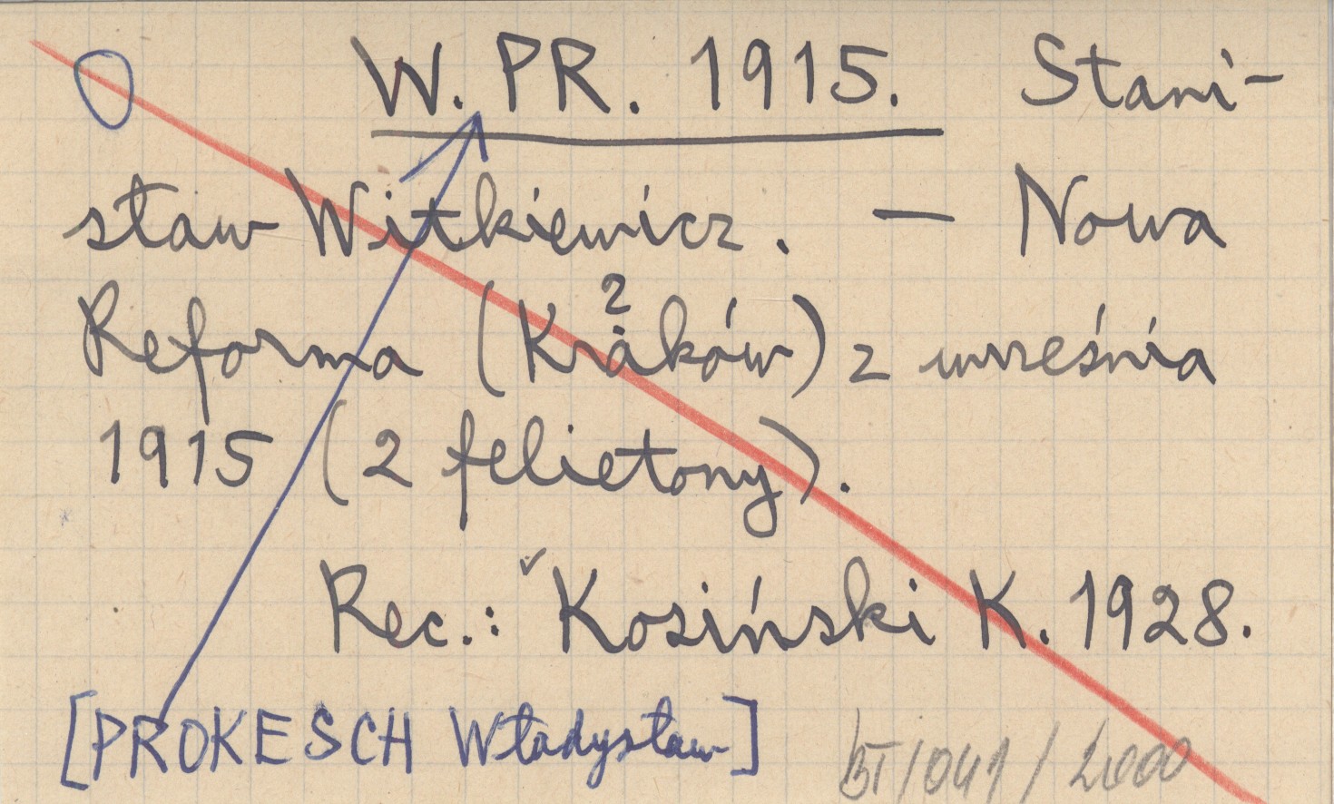W. PR. [PROKESCH Władysław] 1915 Stanisław Witkiewicz.