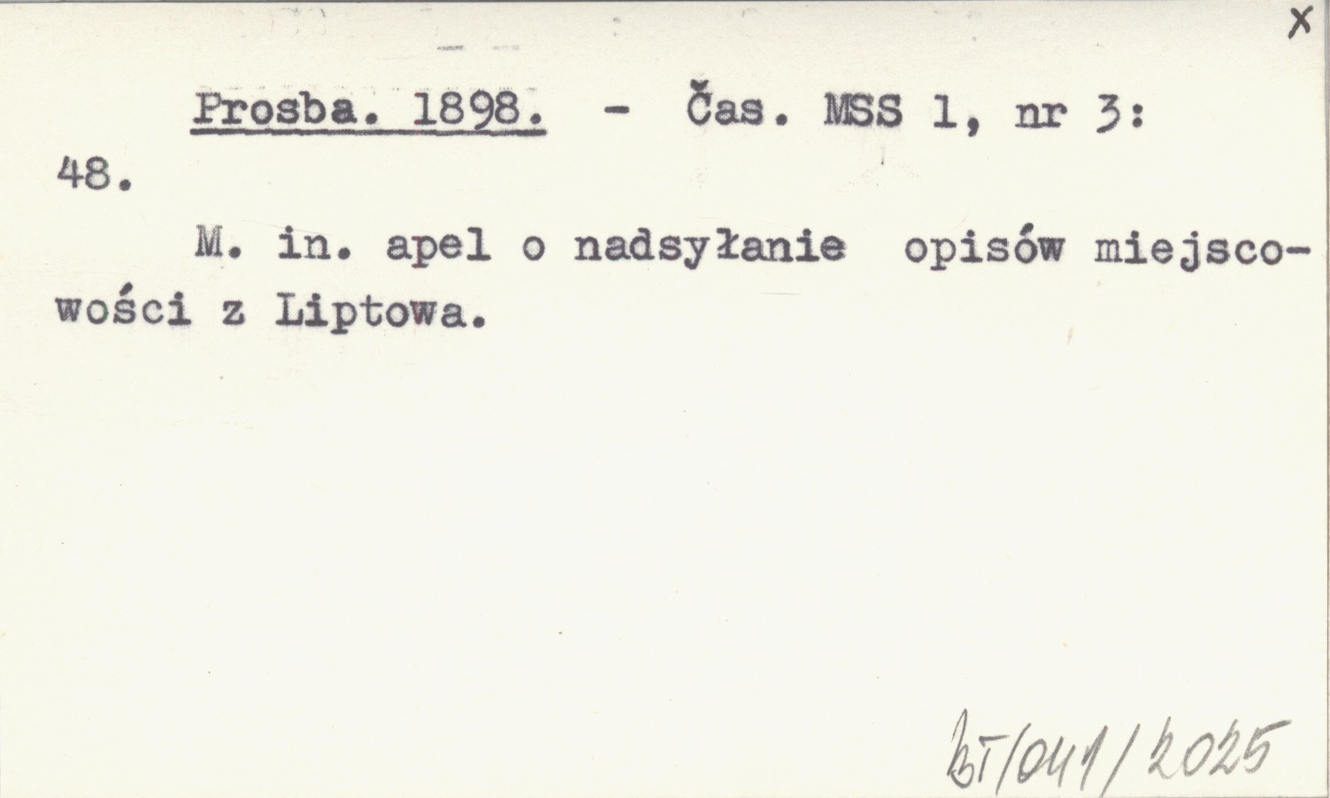 Časopis Muzeálnej Slovenskej Spoločnosti, 1, nr 3: 48. M. in. apel o nadsyłanie opisów miejscowości z Liptowa.