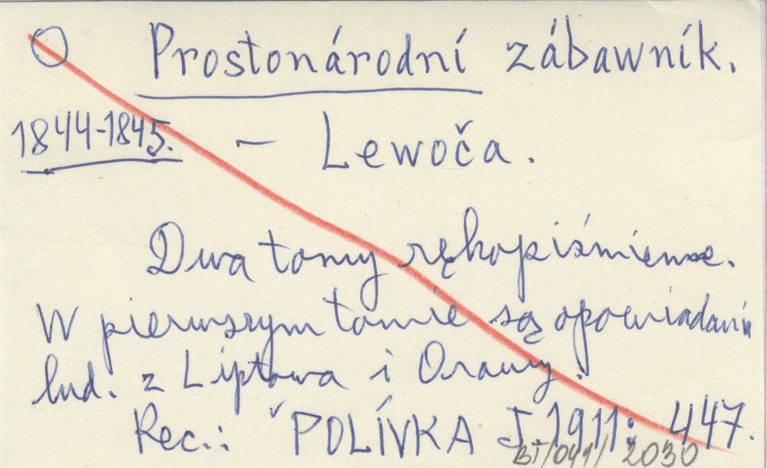Lewoča , Dwa tomy rękopiśmienne. W pierwszym tomie są opowiadania ludowe z Liptowa i Orawy. REC: POLÍVKA J. 1911: 447.