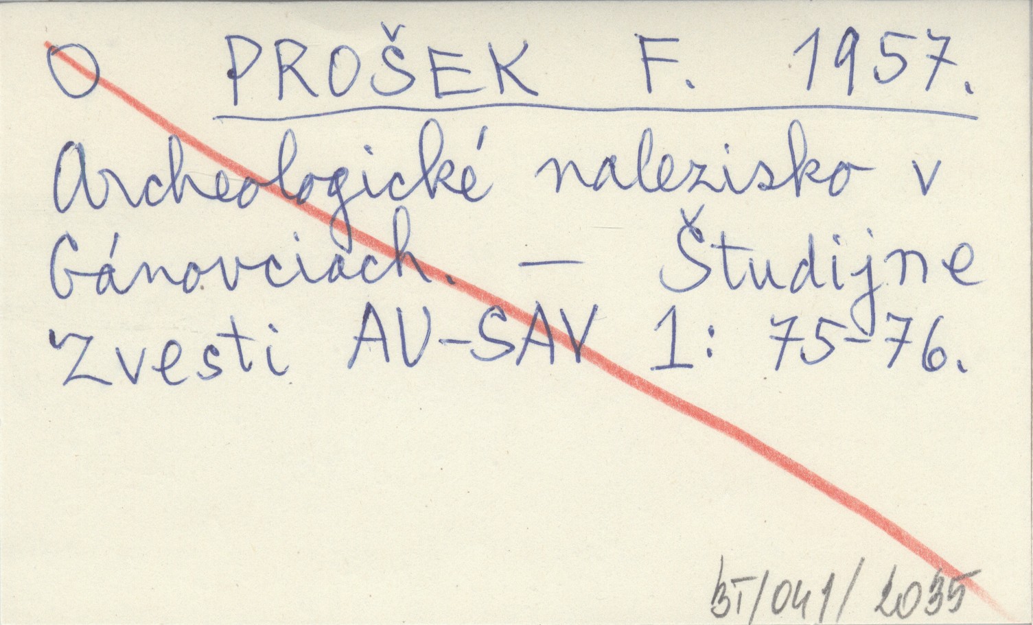 PROŠEK F. 1957 Archeologické nalezisko v Gánovciach.