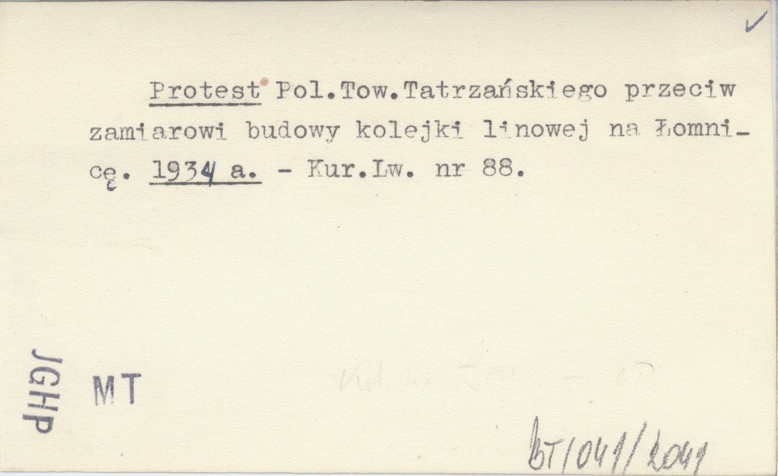 Protest Pol. Tow. Tatrzańskiego przeciw zamiarowi budowy kolejki linowej na Łomnicę. 1934 a