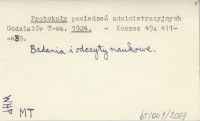 Protokoły posiedzeń administracyjnych Oddziałów T-wa. 1923 a