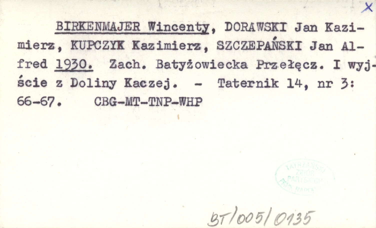 BIRKENMAJER Wincenty DORAWSKI, Jan Kazimierz. ; KUPCZYK, Kazimierz. ; SZCZEPAŃSKI, Jan Alfred. ; 1930 Zach. Batyżowiecka Przełęcz. I wyjście z Doliny Kaczej.
