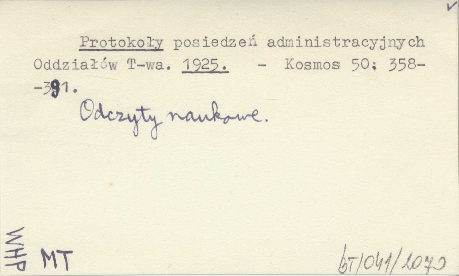 Protokoły posiedzeń administracyjnych Oddziałów T-wa. 1925