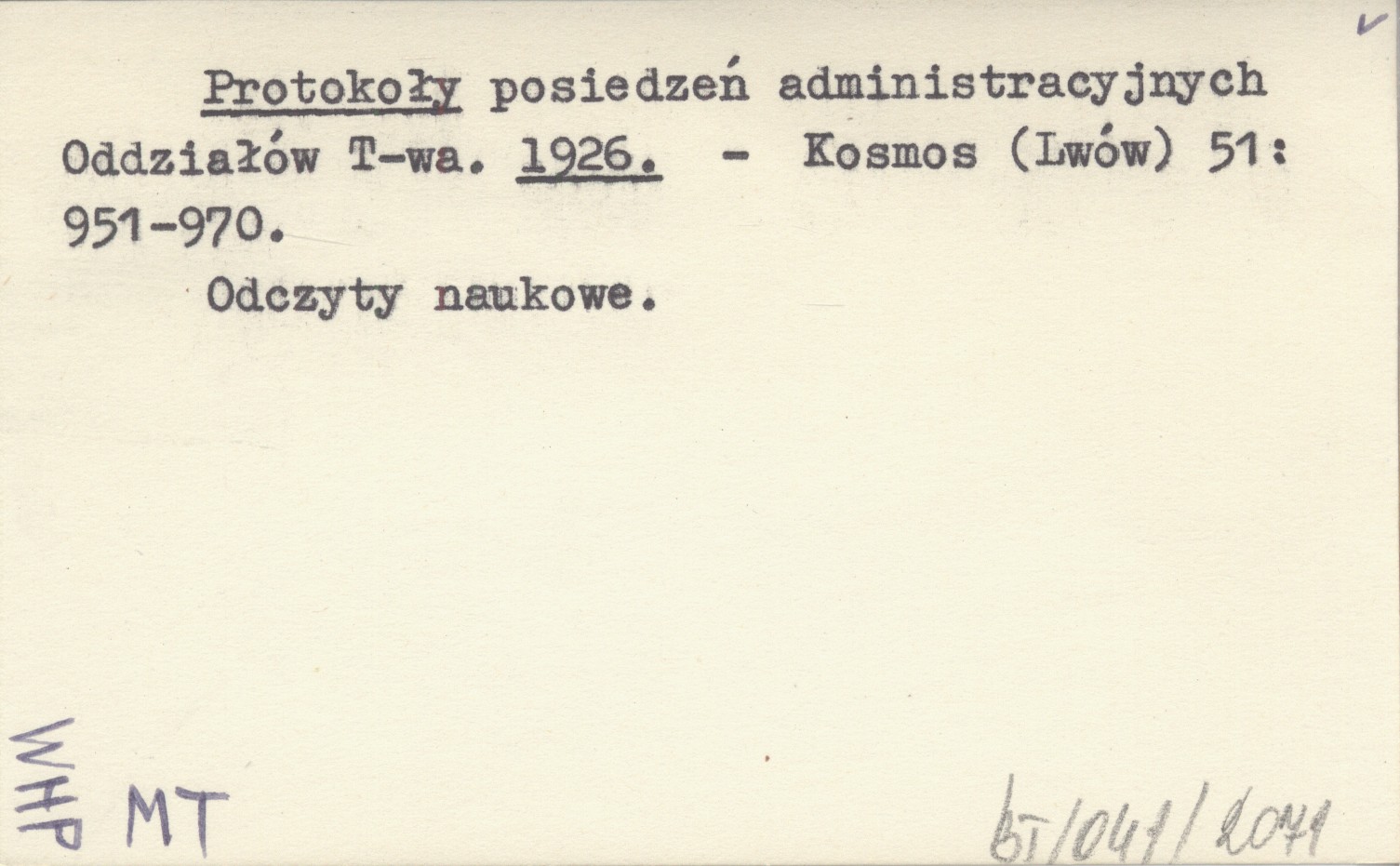 Kosmos (Lwów) , 51: 951-970. Odczyty naukowe.