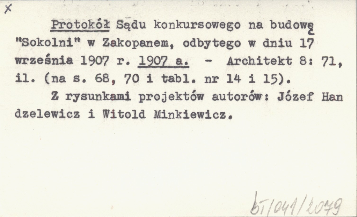 Protokół Sądu konkursowego na budowę "Sokolni" w Zakopanem, odbytego w dniu 17 września 1907 r. 1907 a