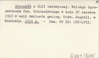 Protokół z XLII nadzwyczaj. Walnego Zgromadzenia Tow. Tatrzańskiego w dniu 27 czerwca 1913 w sali Gabinetu geolog. Uniw. Jagiell. w Krakowie. 1914 a