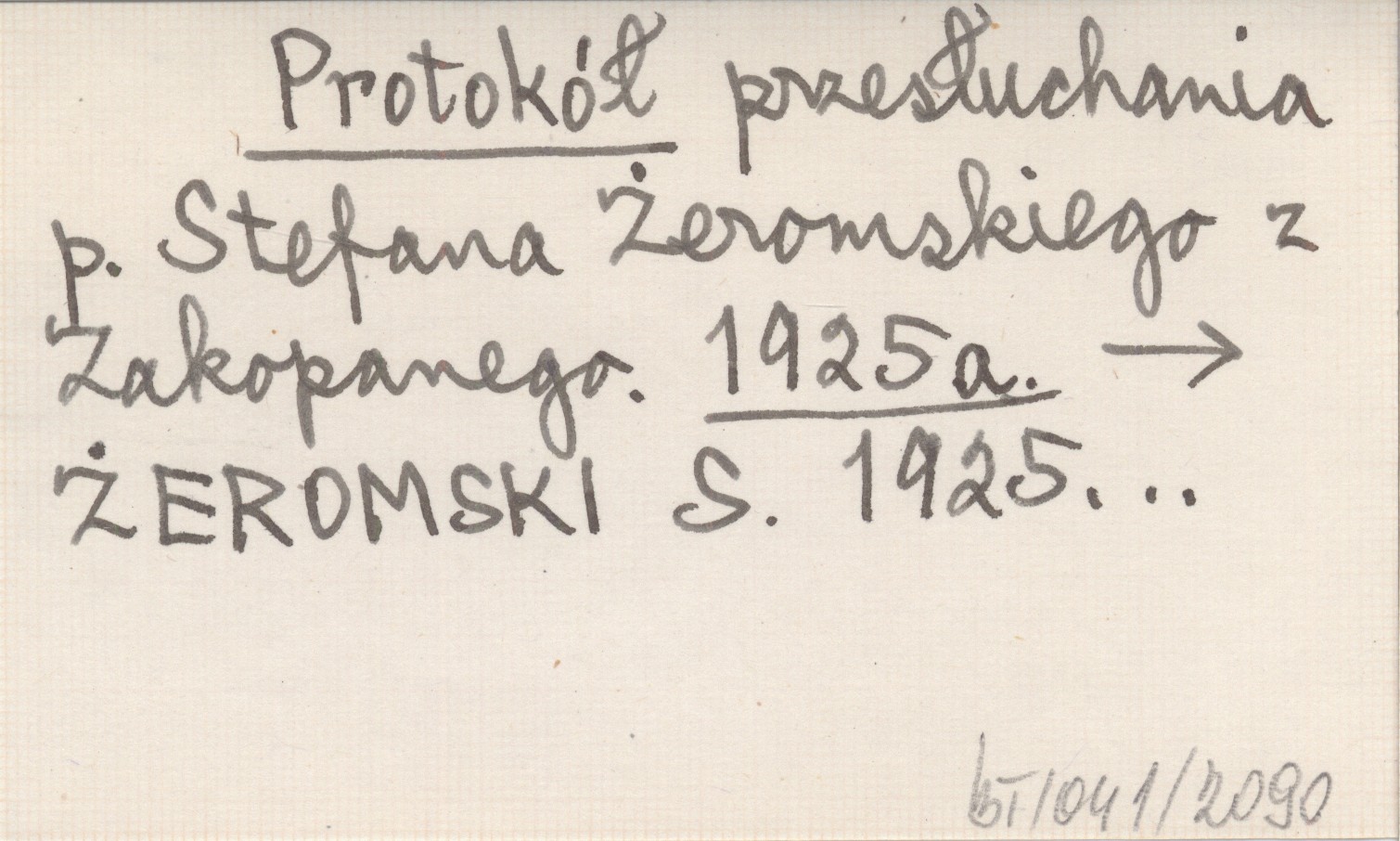 Protokół przesłuchania p. Stefana Żeromskiego z Zakopanego. 1925 a