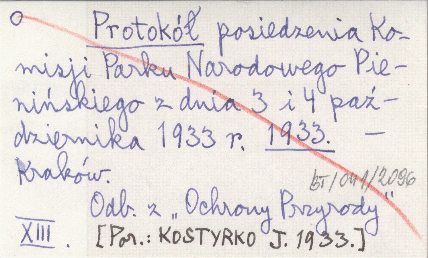 Protokół posiedzenia Komisji Parku Narodowego w Pieninach w dniach 3 i 4 października 1933 r. 1933