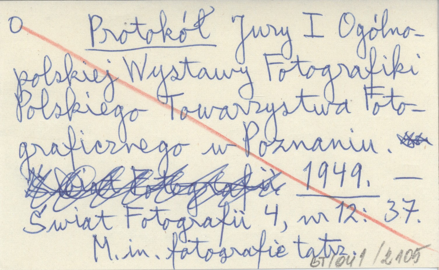 Protokół Jury I Ogólnopolskiej Wystawy Fotografiki Polskiego Towarzystwa Fotograficznego w Poznaniu. 1949