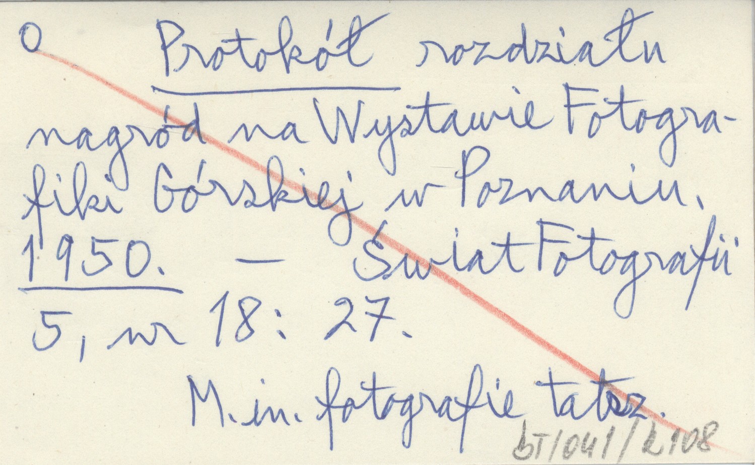 Protokół rozdziału nagród na Wystawie Fotografiki Górskiej w Poznaniu. 1950