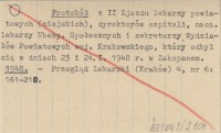 Protokół z II Zjazdu lekarzy powiatowych (miejskich), dyrektorów szpitali, nacz. lekarzy Ubezp. Społecznych i sekretarzy Wydziałów Powiatowych woj. Krakowskiego, który odbył się w dniach 23 i 24 I 1948 r. w Zakopanem. 1948