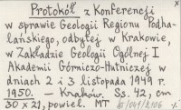 Protokół z Konferencji w sprawie Geologii Regionu Podhalańskiego, odbytej w Krakowie, w Zakładzie Geologii Ogólnej I Akademii Górniczo-Hutniczej w dniach 2 i 3 listopada 1949 r. 1950