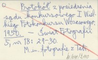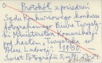 Protokół z posiedzenia sądu konkursowego I Wielkiego Fotokonkursu Wczasowego. 1950