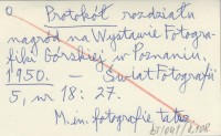 Protokół rozdziału nagród na Wystawie Fotografiki Górskiej w Poznaniu. 1950