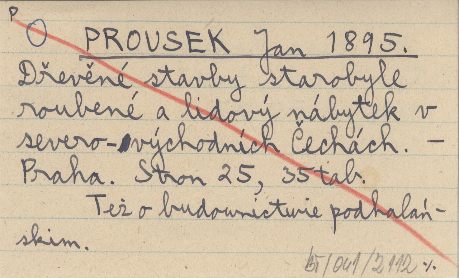 PROUSEK Jan 1895 Dřevěné stavby starobyle roubené a lidový nábytek v severo-východních Čechách.