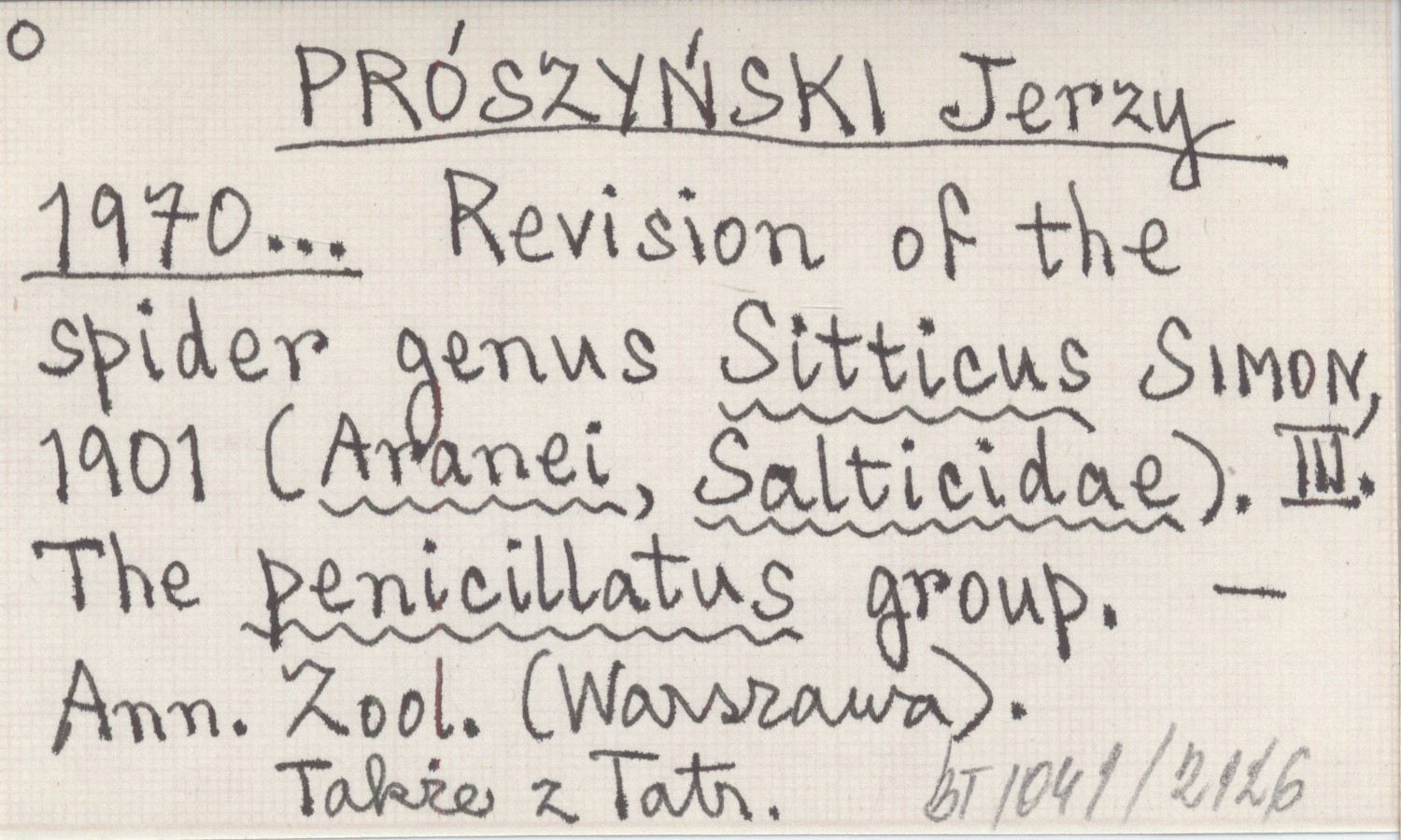 PRÓSZYŃSKI Jerzy 1970... Revision of the spider genus Sitticus SIMON, 1901 (Aranei, Salticidae). III. The penicillatus group.