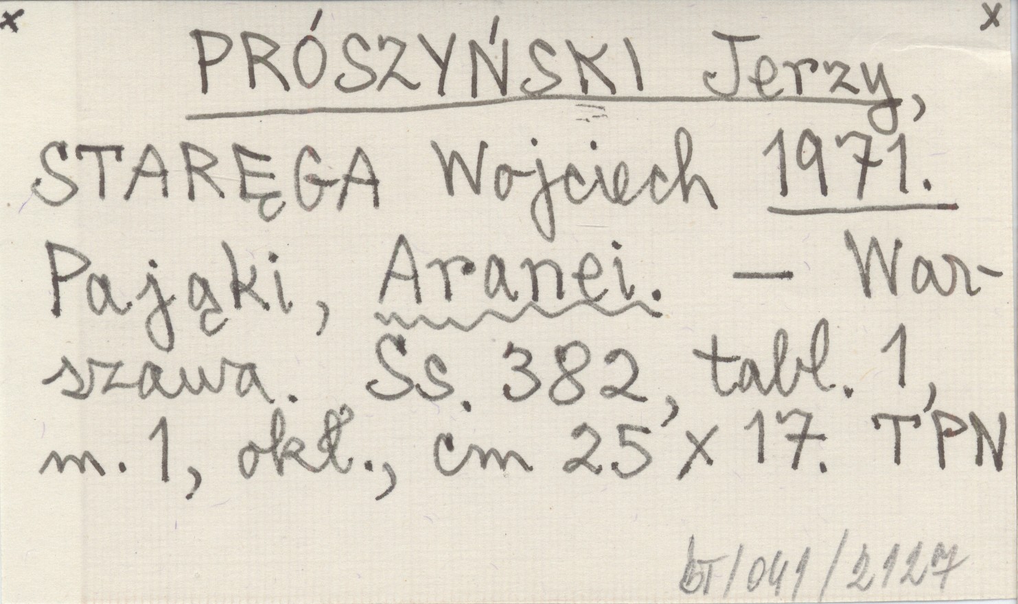PRÓSZYŃSKI Jerzy STARĘGA, Wojciech. ; 1971 Pająki, Aranei.