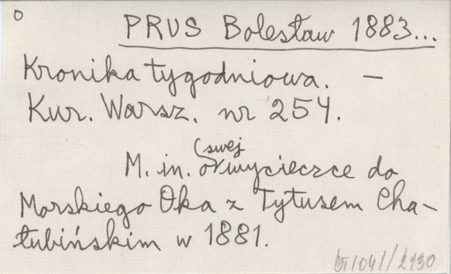 Kurier Warszawski, Nr 254. M. in. o swej wycieczce do Morskiego Oka z Tytusem Chałubińskim w 1881.