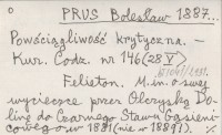 PRUS Bolesław 1887... Powściągliwość krytyczna.
