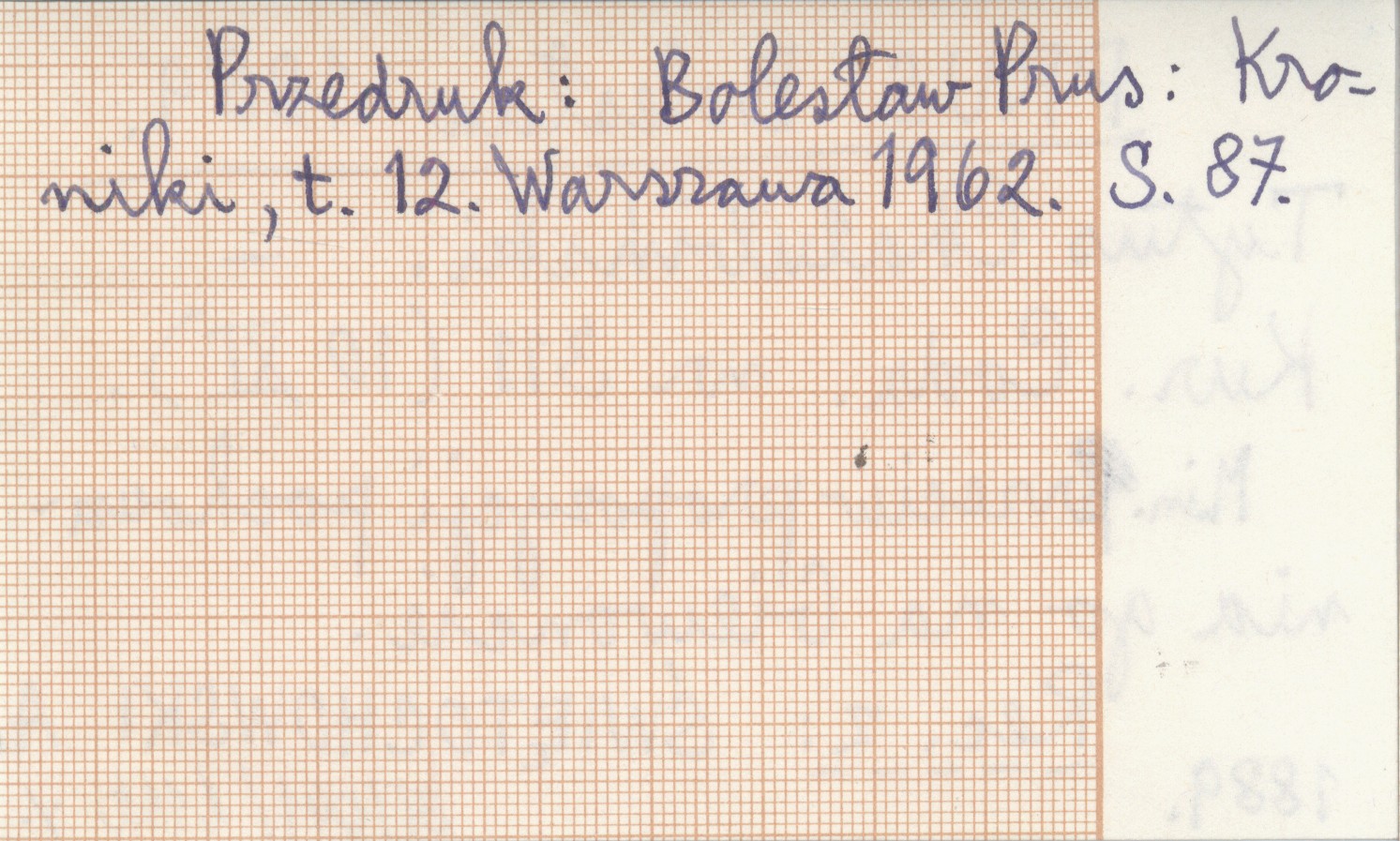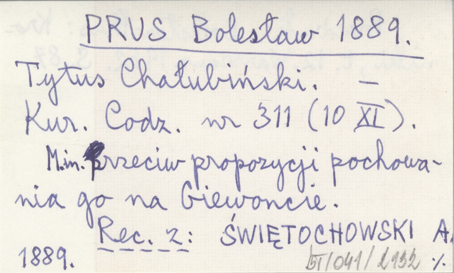 Kurier Codzienny, Nr 311 (10 XI). M. in. przeciw propozycji pochowania go na Giewoncie. Recenzja z: ŚWIĘTOCHOWSKA A. 1889. Przedruk: Bolesław Prus, Kroniki, t. 12 Warszawa 1962: 87.