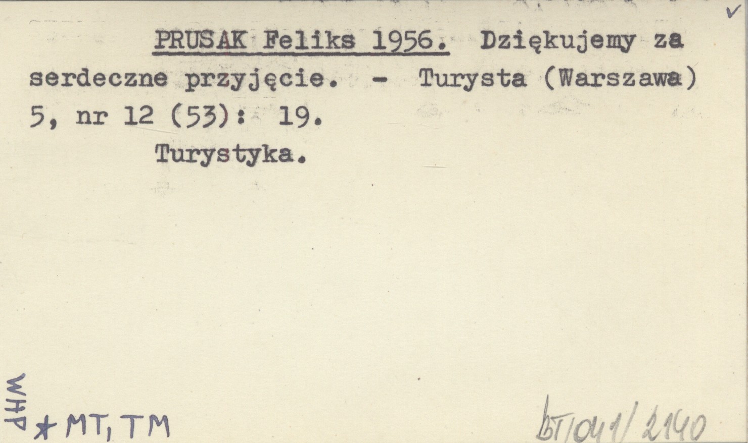 PRUSAK Feliks 1956 Dziękujemy za serdeczne przyjęcie.