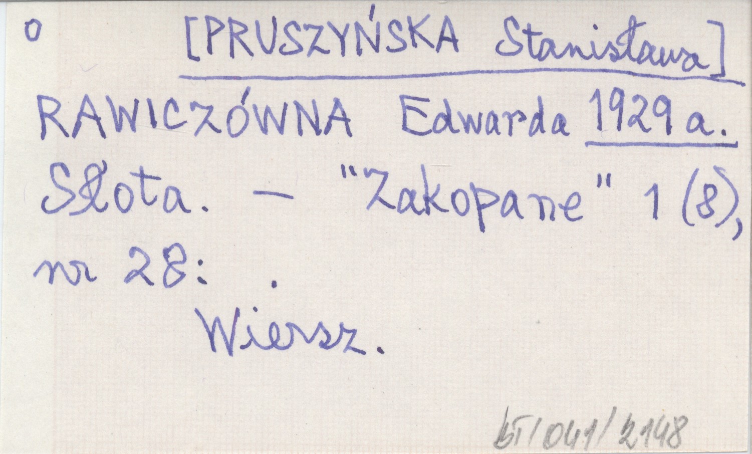 [PRUSZYŃSKA Stanisława] RAWICZÓWNA, Edwarda. ; 1929 a Słota.