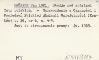 PRÜFFER Jan 1921 Studja nad motylami Tatr polskich.