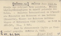 PRÜFFER Jean [PRÜFFER Jan] 1923 a Studja nad motylami Tatr polskich. Etudes lépidoptérologiques du massif polonais des Tatra.
