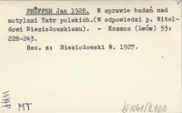 PRÜFFER Jan 1928 W sprawie badań nad motylami Tatr polskich. (W odpowiedzi p. Witoldowi Niesiołowskiemu).
