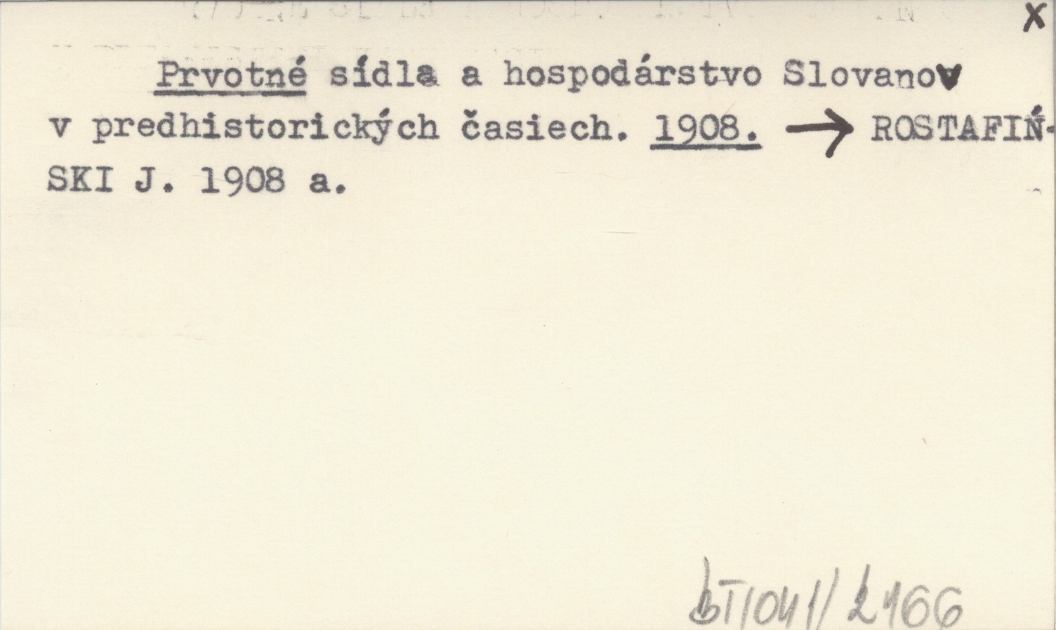 Prvotné sídla a hospodárstvo Slovanov v predhistorických časiech. 1908
