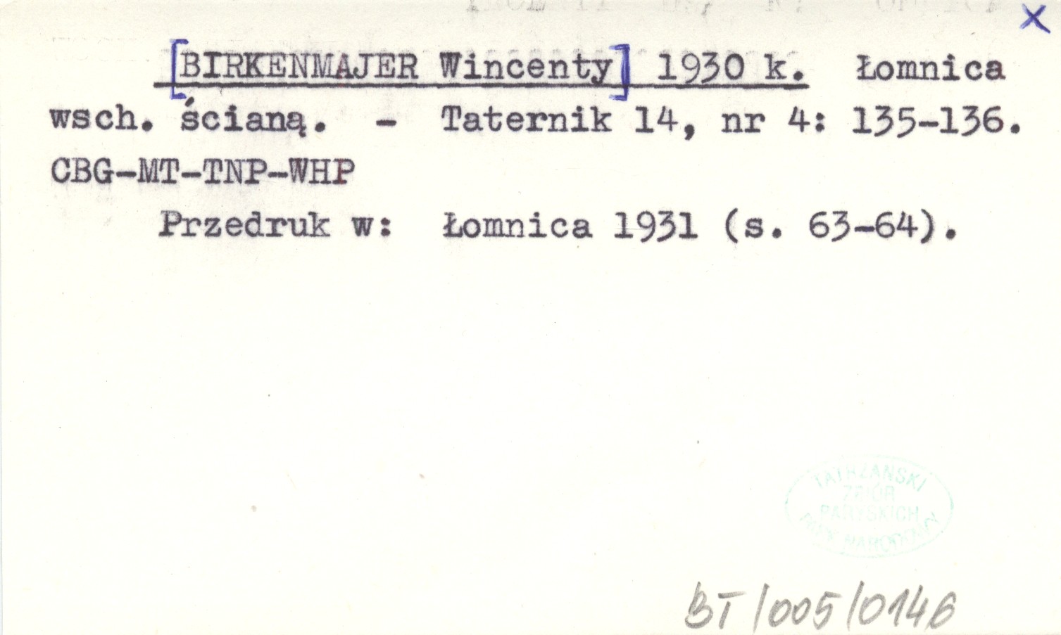 Taternik, 14, nr 4: 135-136. Przedruk w: Łomnica 1931 (s. 63-64).