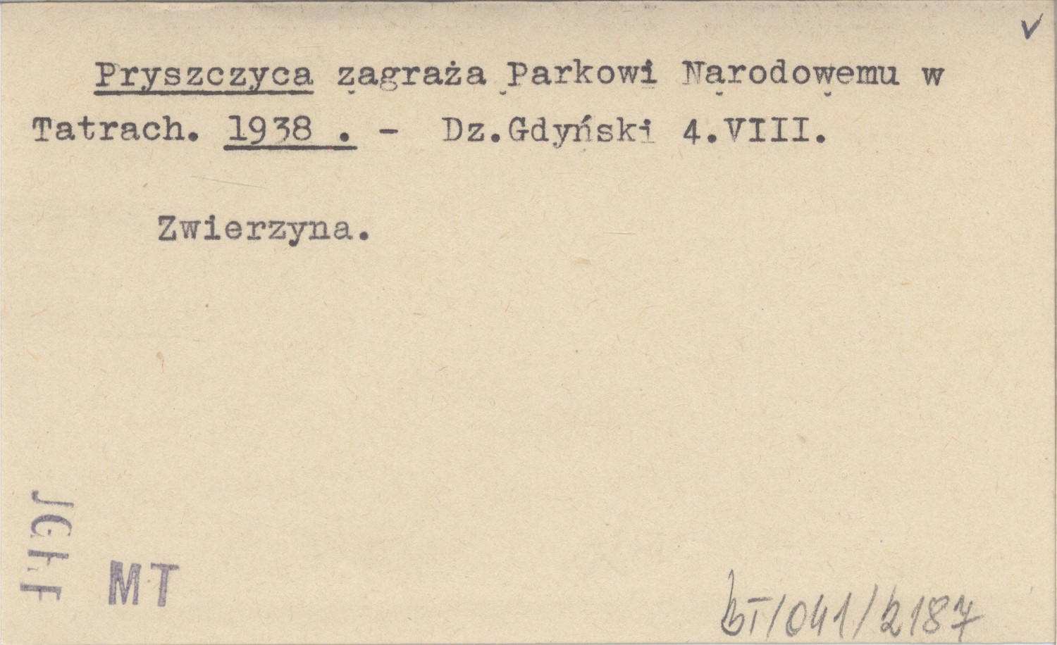 Pryszczyca zagraża Parkowi Narodowemu w Tatrach. 1938